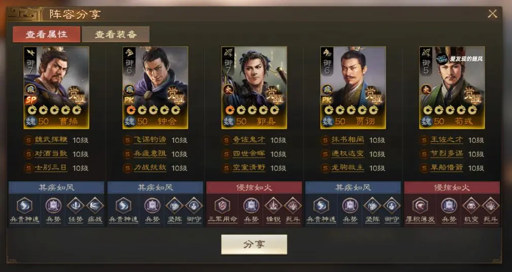 最后是SP曹操,因为他的被动是施加负面状态就能增伤,因此四世余晖的中毒也是可以给SP曹操增伤的,且四世余晖是启动,可以做到先启动增伤,再放另一个战法的效果。一般来说SP曹操如果要带四世余晖,那么另一个战法会搭配士别三日或者环环相扣。