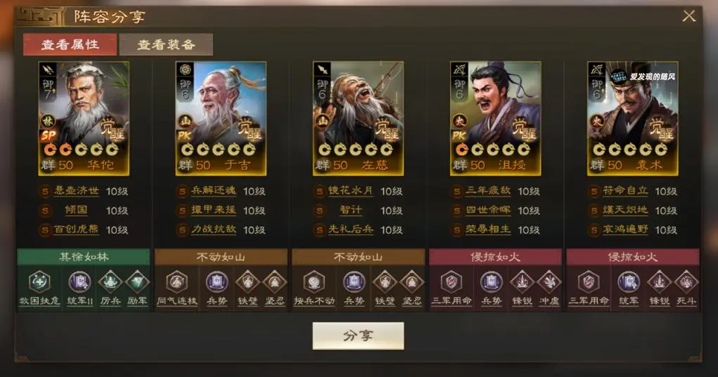 用四世余晖替代原来的腹有鳞甲,出伤更快,总倍率也更高,袁术在给不出哀鸿遍野和熯天炽地的情况下也可以参考沮授的带法。整个队伍还是以DOT伤害为主,光环苟住,待DOT伤害突破打开缺口。