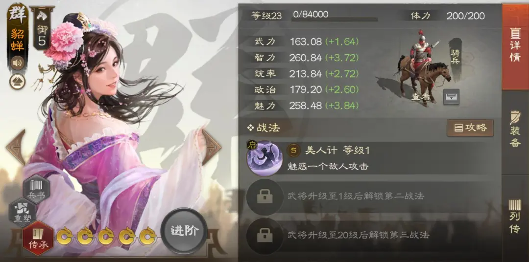 甄姬,魏国4御盾兵,智力成长好,统率成长略差。