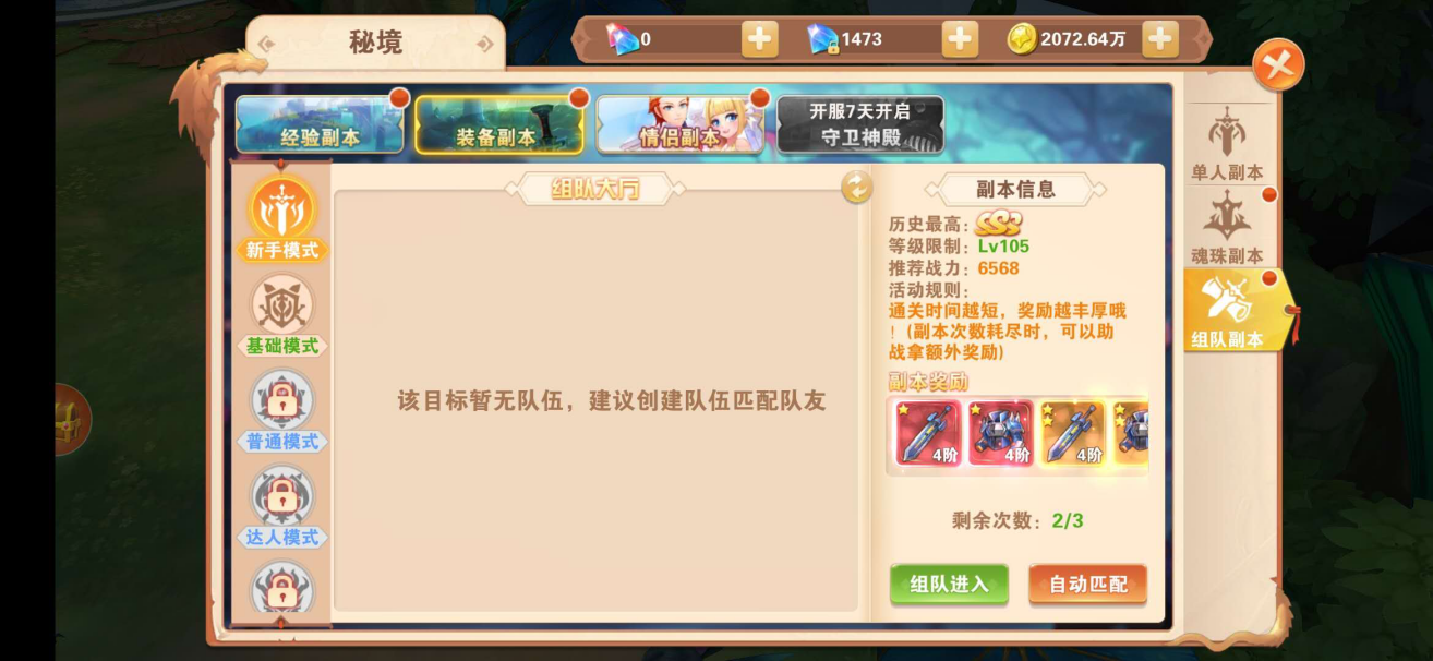 《星界幻想》一共有4个组队副本: 经验副本、装备副本、情侣副本、守卫神殿,我们来看看这些副本怎么玩。