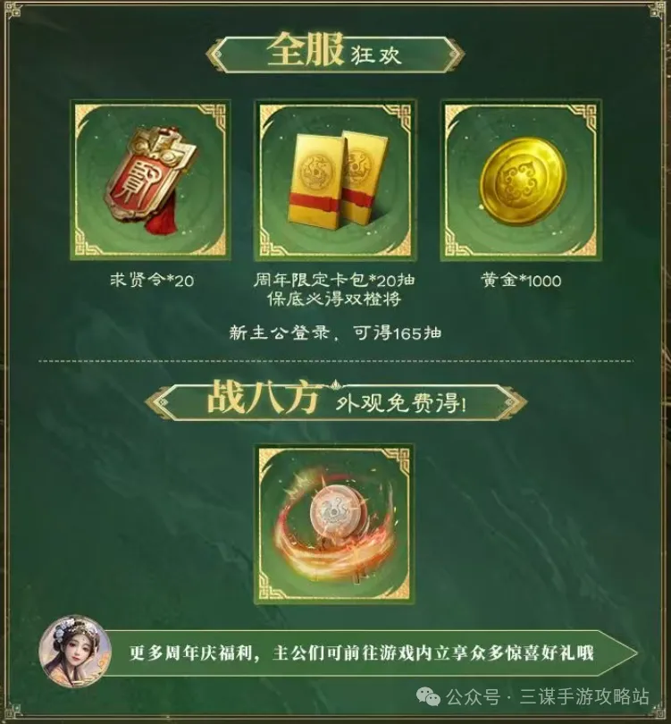 三国谋定天下1周年活动玩法奖励一览