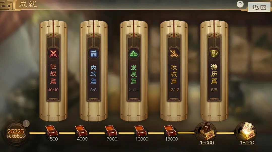 现在最后一个成就卡包是只有新武将的卡包(不含内政),虽然这两赛季的因为武将过少包含了上赛季的武将,但整体还是不错的。如果你没有霸业奖励,这个卡包可能是你神抽出好卡的最大机会。有霸业奖励的玩家也能加大你抽到好武将的概率,非常有必要将成就积分刷到18000以上。